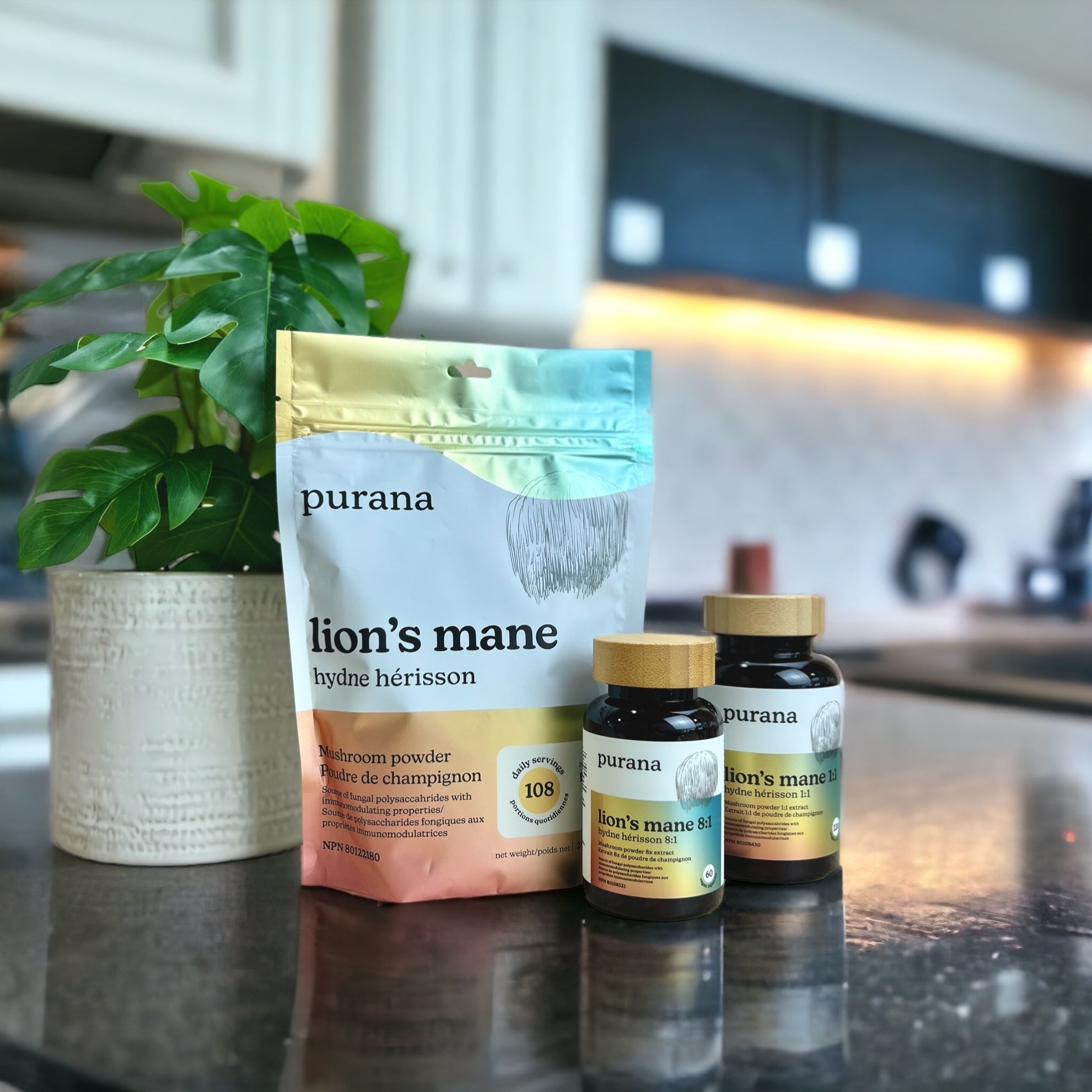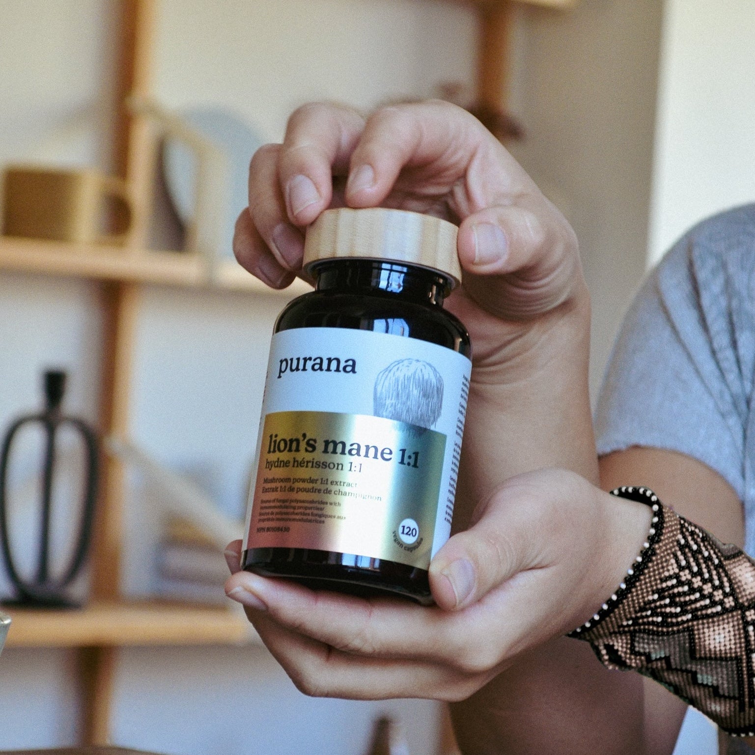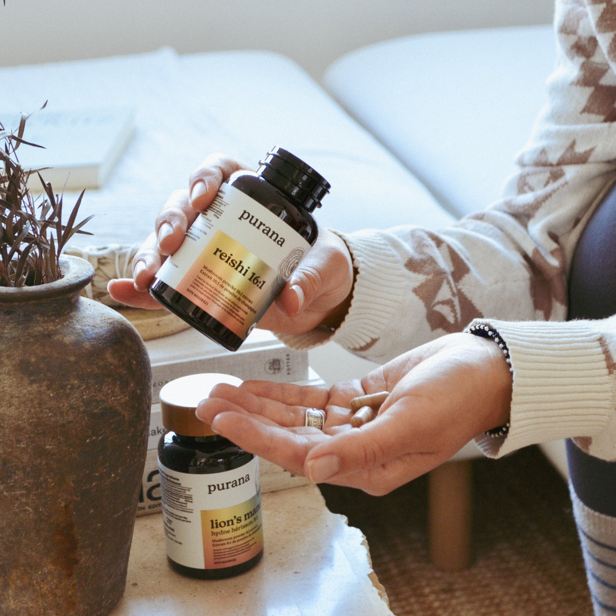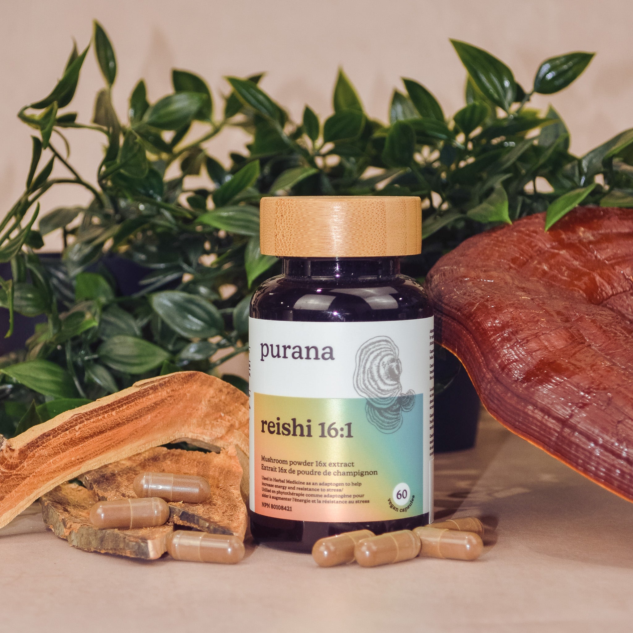 On the back, the true magic is revealed: organic, concentrated, dual-extracted, 100% fruiting body — the stuff that makes Purana powerful. The campaign was a hit at events and pop-ups, creating instant conversation.
