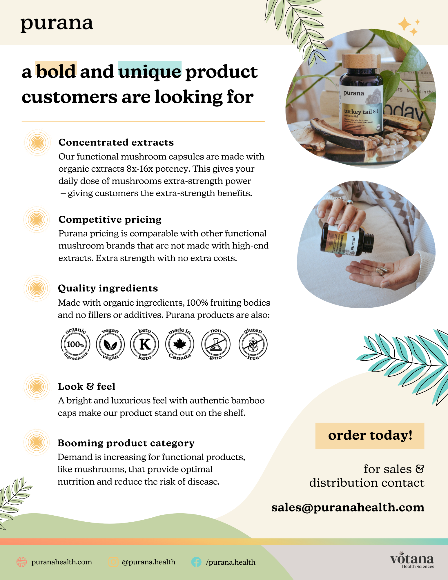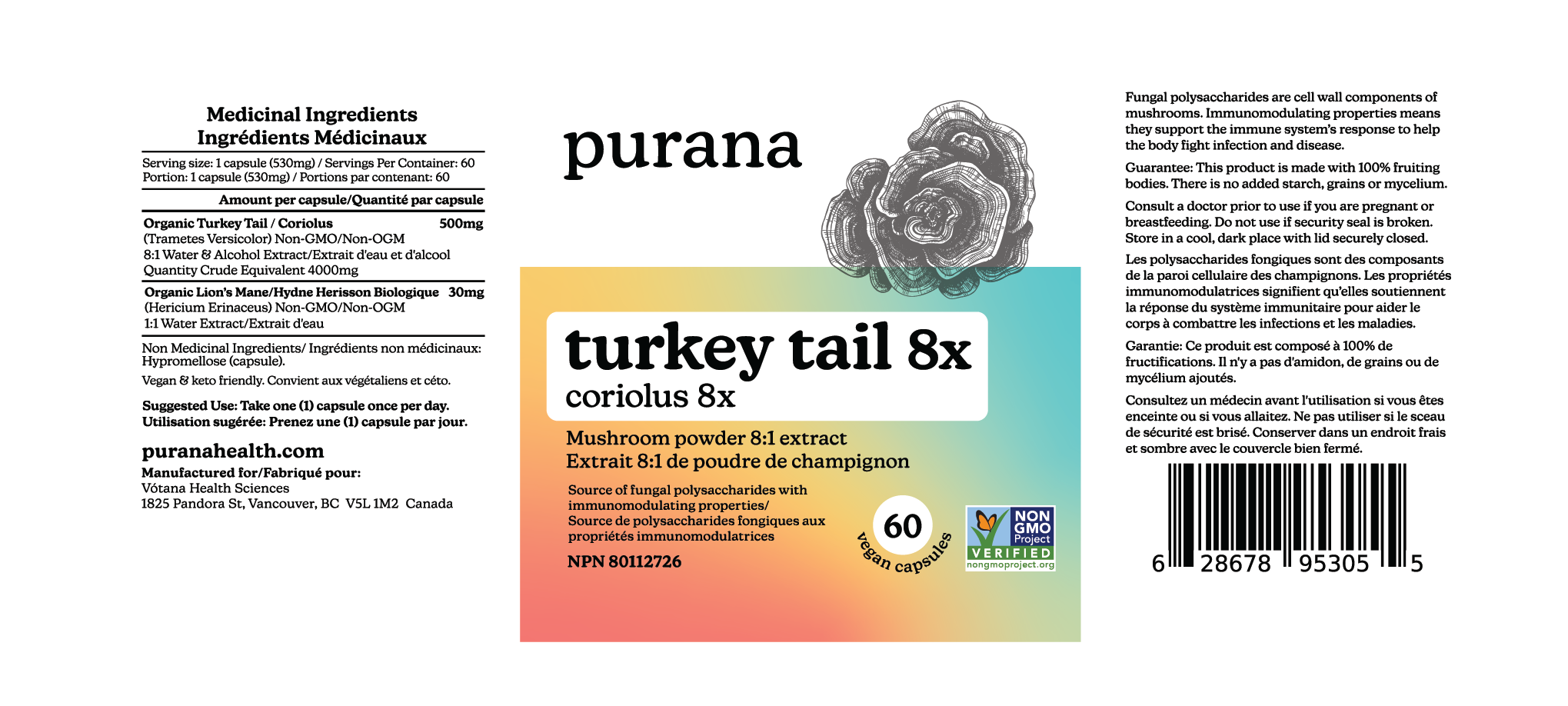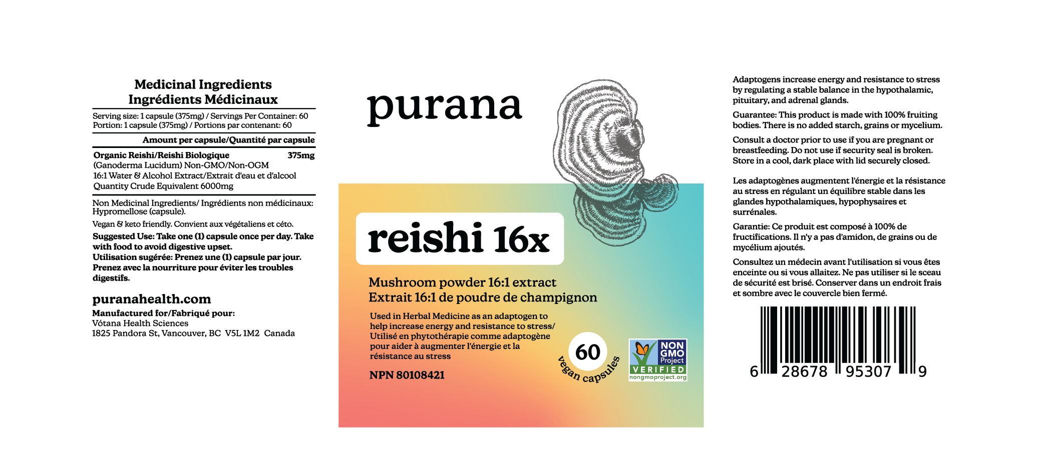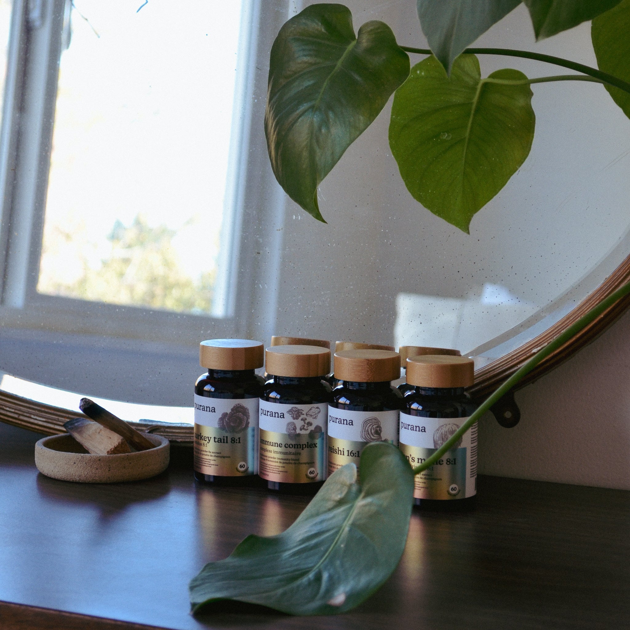 On the back, the true magic is revealed: organic, concentrated, dual-extracted, 100% fruiting body — the stuff that makes Purana powerful. The campaign was a hit at events and pop-ups, creating instant conversation.
