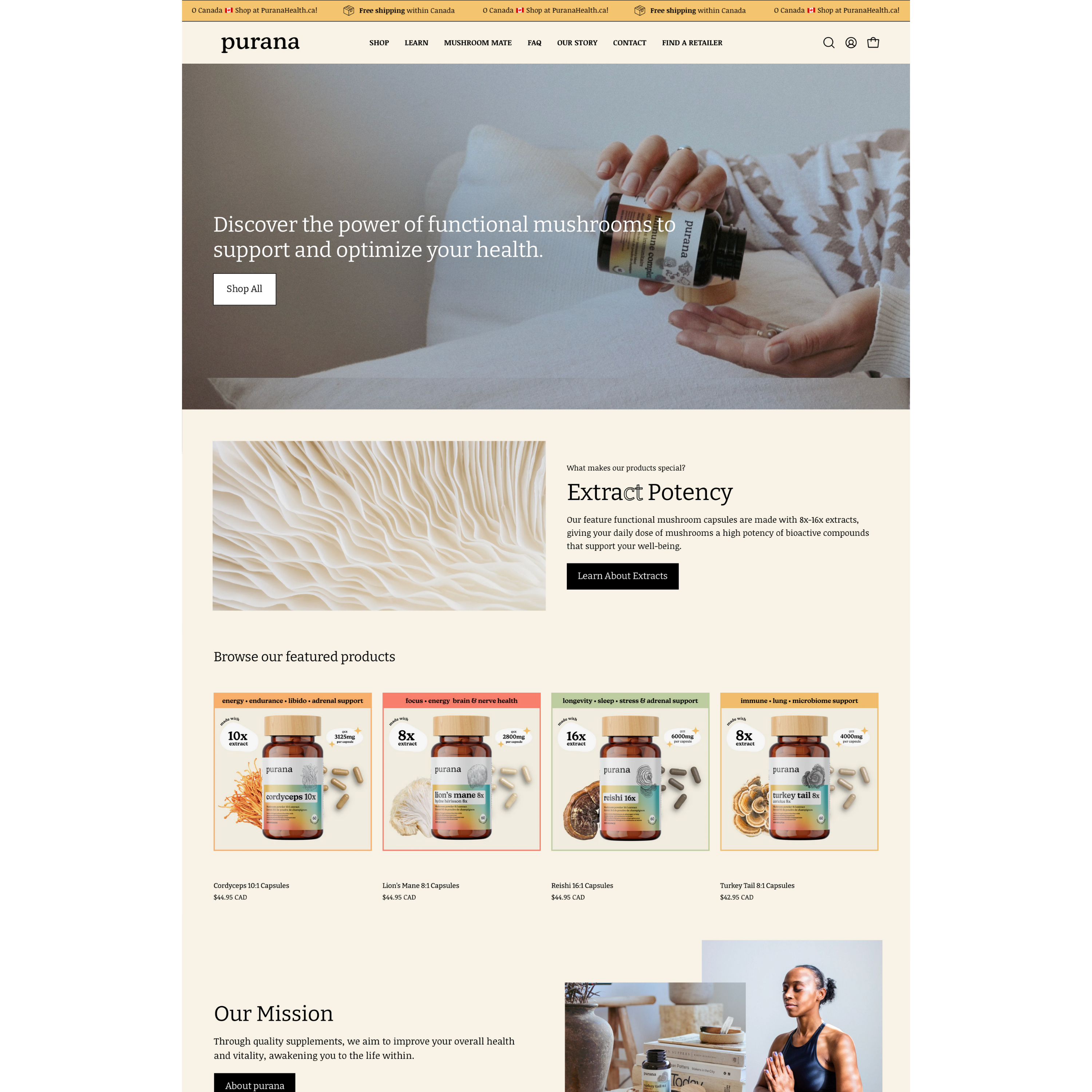 Purana is a Canadian wellness brand focused on the power of functional mushrooms. Built from the ground up, this project was a true creative partnership — blending deep research with bold storytelling to help position Purana as a trusted voice in the natural health space.
