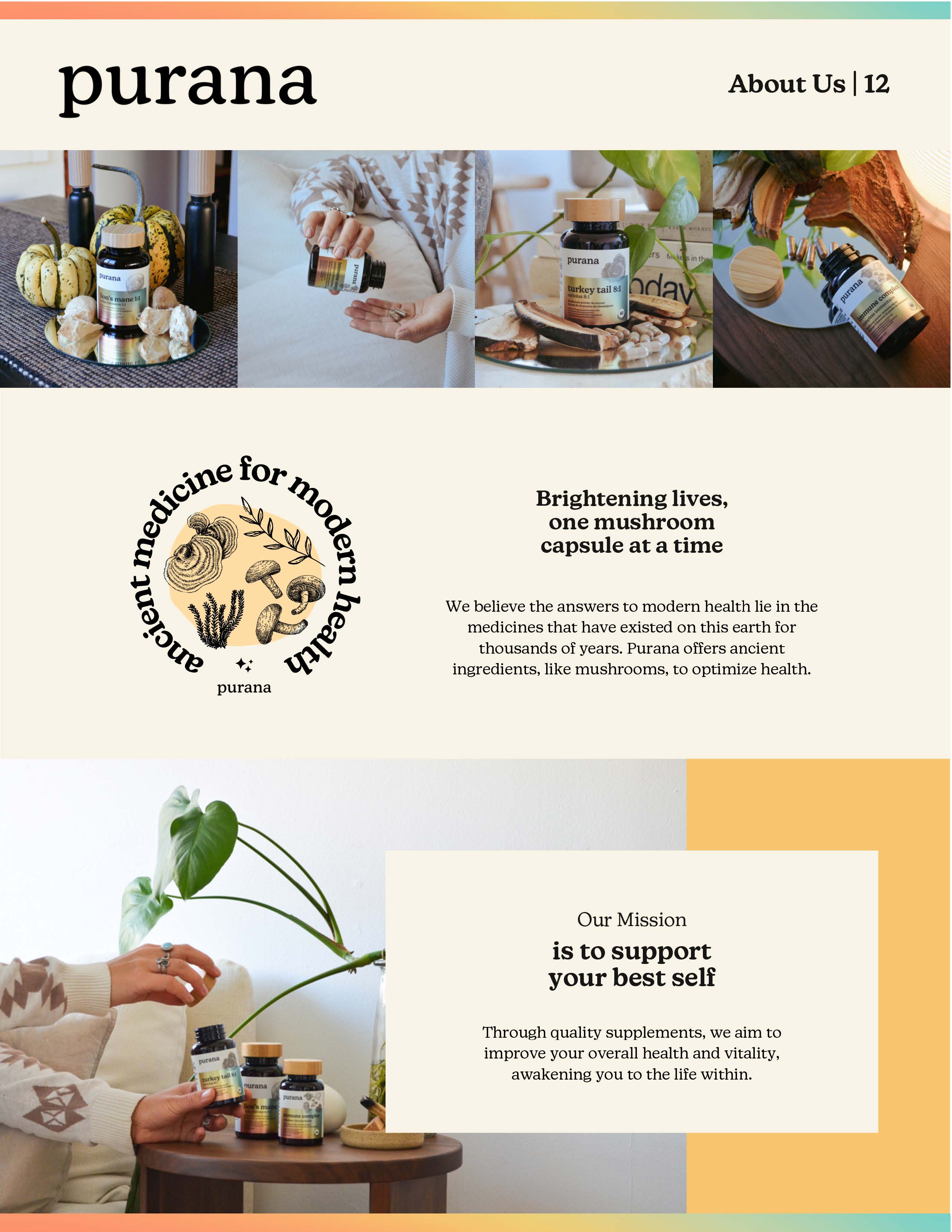 Every page was an opportunity to deepen connection — from the about section that shares Purana’s mission and values, to ingredient pages that educate visitors on sourcing, potency, and extraction. The tone balances approachability with expertise, building trust while inspiring curiosity.